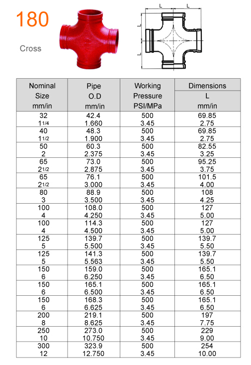Pipe Fittings > Ductile Iron Grooved Pipe Fitting > Cross