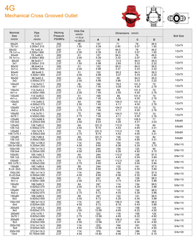 Pipe Fittings > Ductile Iron Grooved Pipe Fitting > Mechanical Cross Grooved Outlet